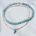 Absolutely stunning Aquamarine Mama Necklace, this short 16" necklace is great to wear with tshirts and necklace stacks.