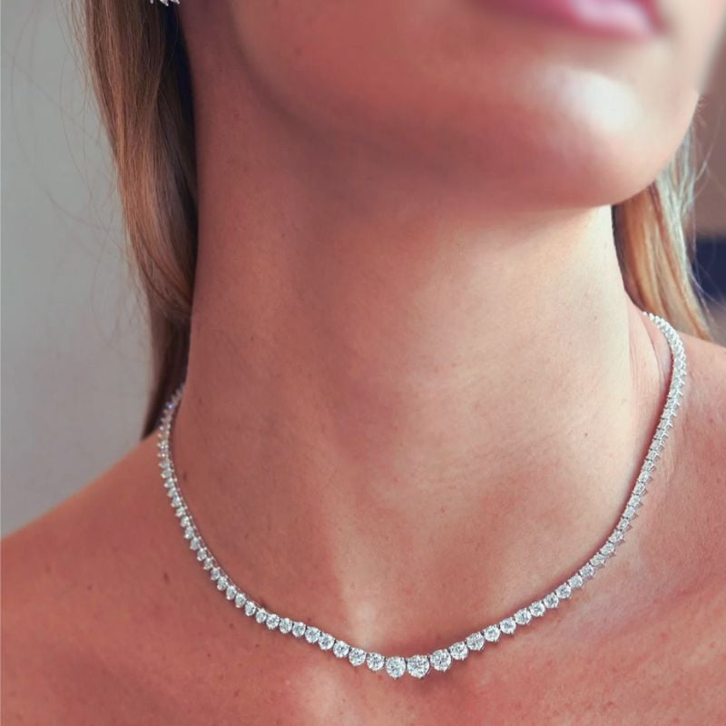 This beautiful Tennis necklace is an everyday essential, the striking single-strand, GRADUATED sparkler necklace has transformed from a piece reserved for special occasions.